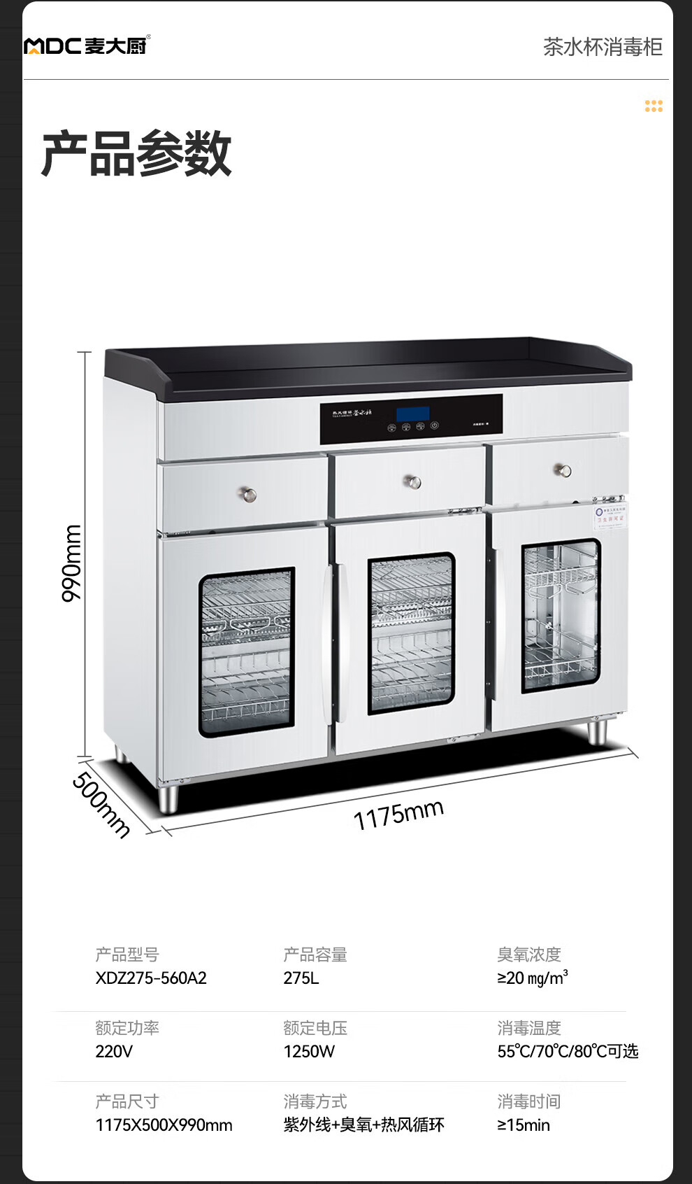 - 更多MDC商用茶水消毒柜规格咨询在线客服