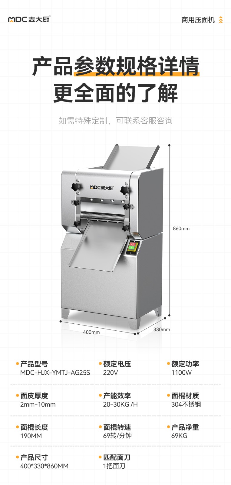 - 更多MDC商用压面机规格咨询在线客服