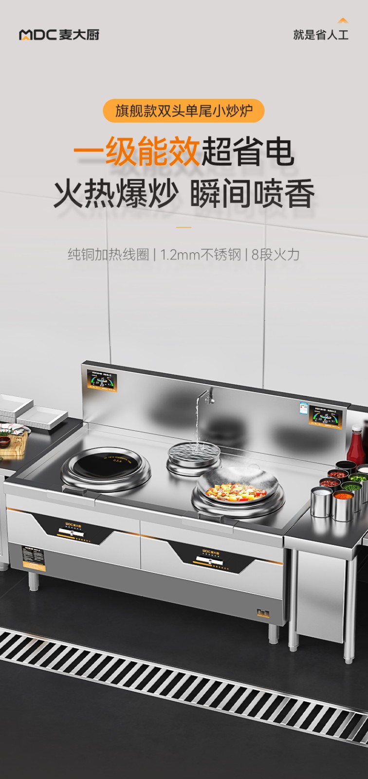 • 更多MDC商用双头单尾小炒炉规格咨询在线客服