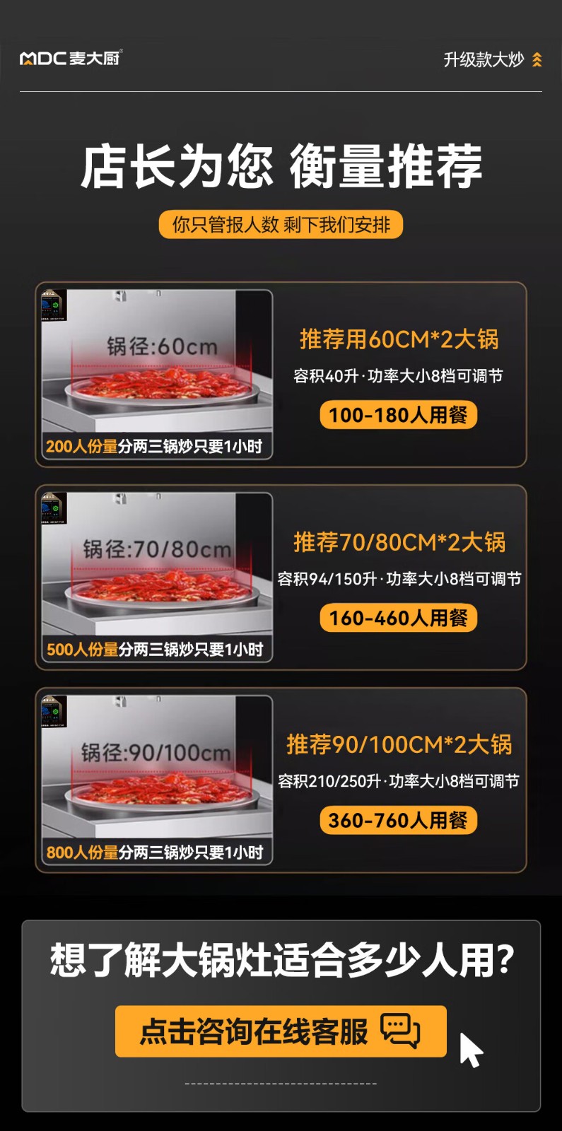- 更多MDC商用大锅灶规格咨询在线客服