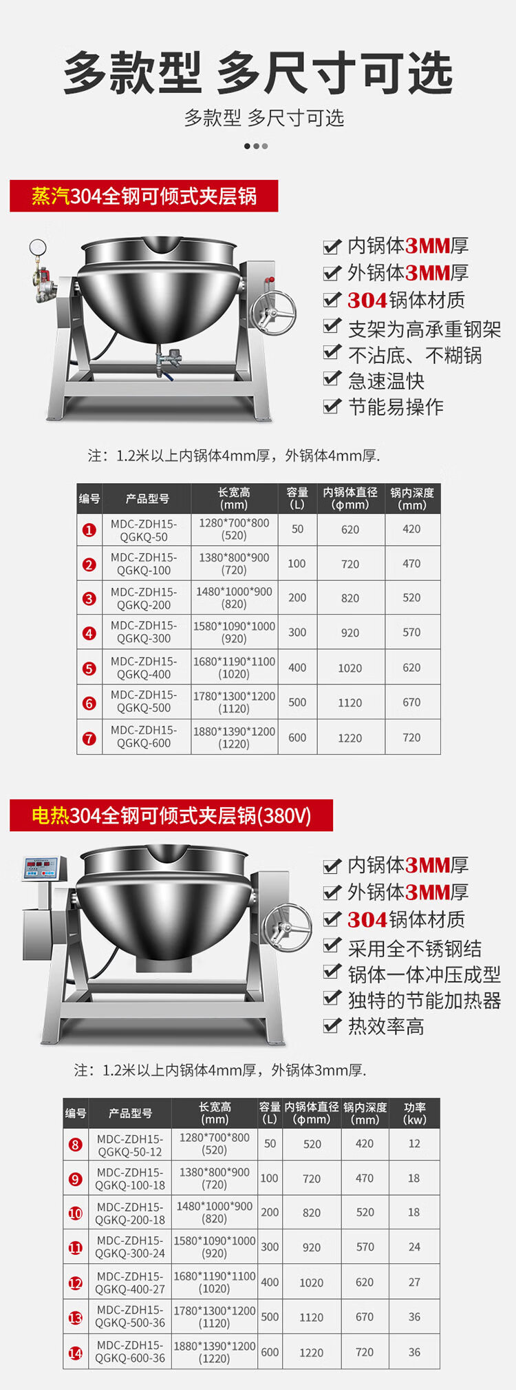 - 更多MDC商用夹层锅规格咨询在线客服